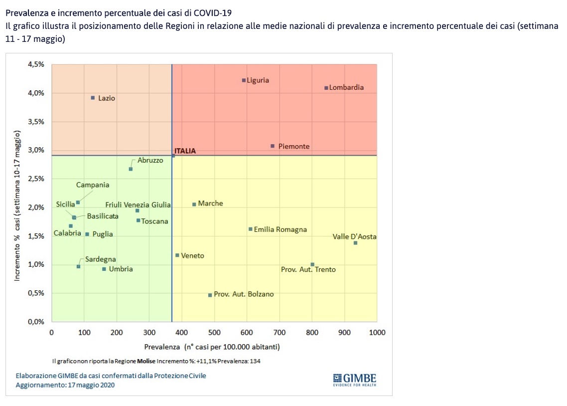 Le regioni con la crescita percentuale dei casi più alta rispetto a ieri sono infatti