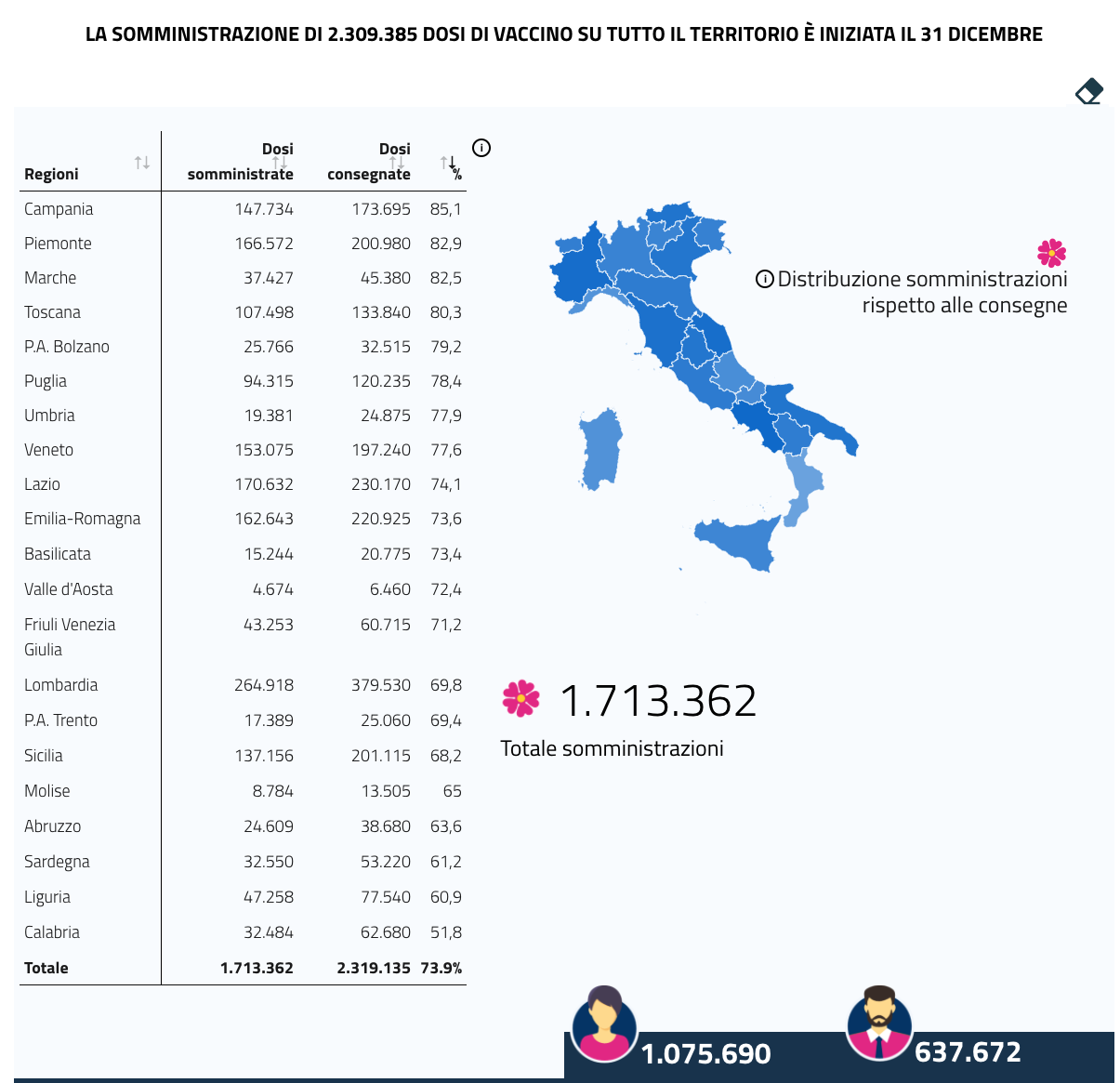 Qui l'andamento delle vaccinazioni