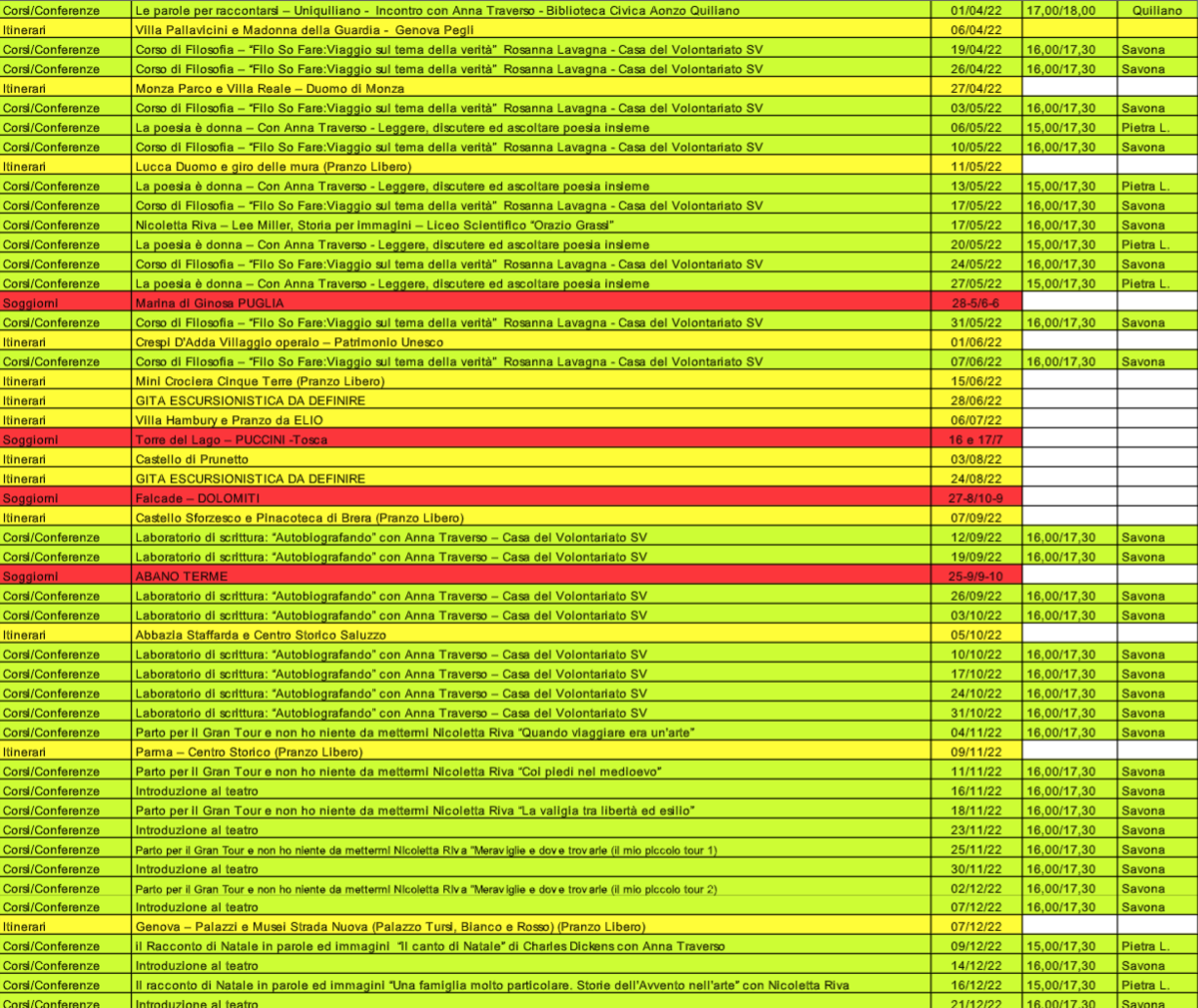 Per il 2022 Auser Cultura Savona ha previsto una nutrita serie di iniziative, illustrate nel catalogo, che potranno essere integrate ulteriormente anche in base alla collaborazione con enti e associazioni del territorio.