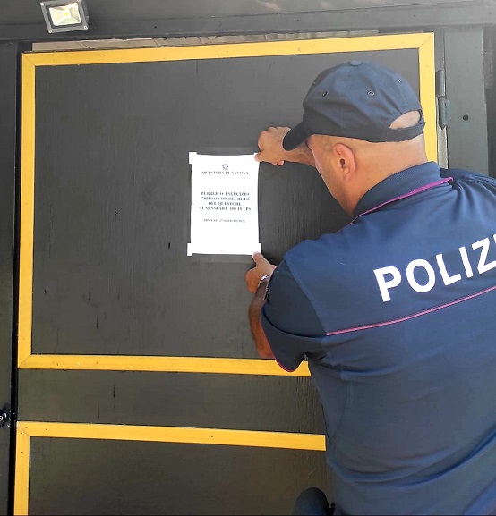 L'atto, notificato ieri sera dai poliziotti della Divisione Polizia Amministrativa e dai Carabinieri di Albenga, è stato adottato in esito a diversi interventi effettuati da questi ultimi, nel corso dei quali è stata anche accertata la somministrazione di alcol a minori.