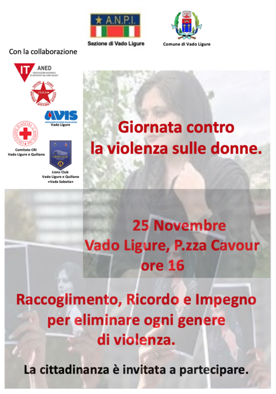 "Il presidio è organizzato con il patrocinio del Comune di Vado Ligure ed in collaborazione con Aned Savona-Imperia, Avis di Vado Ligure, Croce Rossa Comitato Vado Ligure e Quiliano, Lyons Club Vado Ligure e Quiliano, Sezioni Anpi di Valle di Vado Ligure, Zinola, Valleggia, Quiliano.