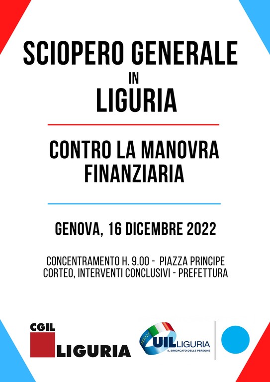 È in corso oggi in Liguria lo sciopero generale di 8 ore indetto da Cgil e Uil contro la Legge di Bilancio.