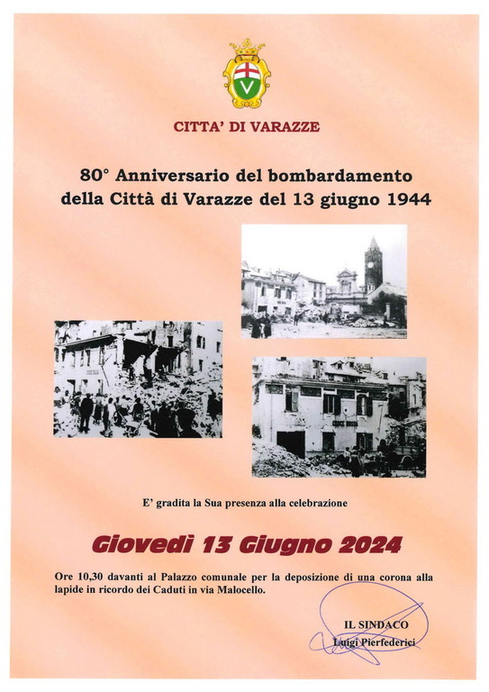 Sono trascorsi 80 anni, ma Varazze non dimentica il bombardamento aereo, che il 13 giugno 1944 sconvolse il centro storico della città e varie altri parti del lungo Teiro, causando 51 vittime, oltre a diversi feriti e seri danni alle abitazioni di via Malocello, via Carattino, Piazza Patrone e via Piave.