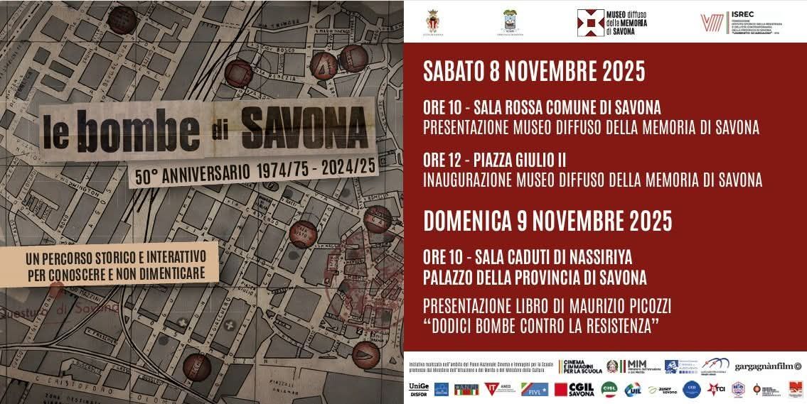 Il Comune di Savona, in collaborazione con l’APS gargagnànfilm, l’ISREC – Istituto Storico della Resistenza e dell’Età Contemporanea, il Liceo Scientifico O. Grassi di Savona e numerosi altri enti e partner, annuncia per l'8 e il 9 novembre la presentazione e inaugurazione del Museo Diffuso della Memoria di Savona (MDMS).