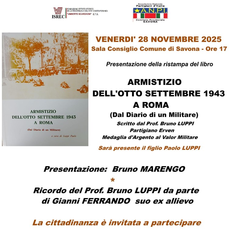 "L'armistizio dell'8 settembre 43 a Roma (dal diario di un militare), scritto dal Prof Bruno Luppi, Partigiano Erven.