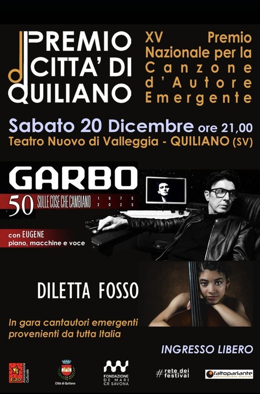 Giunge alla sua quindicesima edizione il Premio Nazionale per la Canzone d’Autore Emergente – Città di Quiliano, uno degli appuntamenti più apprezzati nel panorama italiano dedicato alla musica d’autore. La nuova edizione si terrà sabato 20 dicembre al Teatro Nuovo di Valleggia, confermando la città di Quiliano come nuova casa della manifestazione dal 2021.