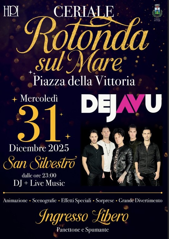 Per salutare l’anno vecchio, la sera del 31 dicembre la piazza si trasformerà in una discoteca a cielo aperto con la musica dal vivo della Déjà Vu Band e DJ set.