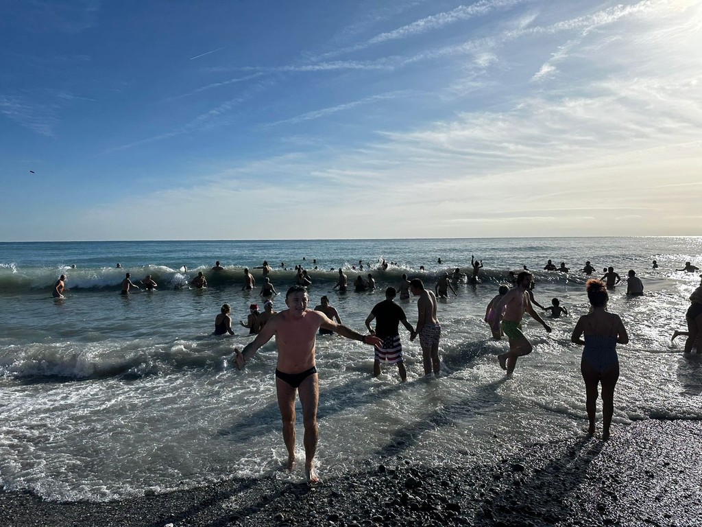 Nonostante una temperatura esterna che segnava appena 9.8°C, il calore dell’entusiasmo ha travolto la spiaggia di Ceriale per l’annuale edizione del Cimento invernale. Ben 169 partecipanti hanno risposto all’appello tuffandosi in mare, che oggi faceva registrare una temperatura di 13.8°C.