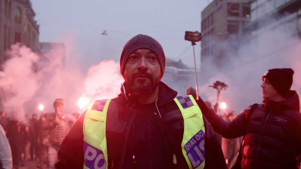 Dopo i violenti scontri tra polizia e manifestanti al vertice europeo di Göteborg nel 2001, un’indagine governativa concluse che la polizia svedese aveva bisogno di comprendere più a fondo i movimenti politici, con molti giovani impegnati per la giustizia sociale e il clima, perché i metodi adottati rischiavano di aggravare le tensioni invece di placarle. Fu creata così la “Polizia del dialogo” , una unità speciale con base a Stoccolma, operativa a tempo pieno. Nel 2022, tra manifestazioni di ogni genere, copie bruciate del Corano e proteste per il clima, la regista Susanna Edwards ha iniziato a seguire gli agenti nella loro missione di salvaguardare la libertà di espressione di tutti.