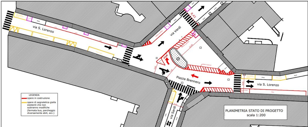 Iniziano lunedì 16 marzo gli interventi di risistemazione di piazza Brennero volti a realizzare un’ampia area pedonale tra l’aiuola grande e i negozi, mantenendo, comunque, la stessa viabilità e mantenendo anche inalterato il numero dei parcheggi.